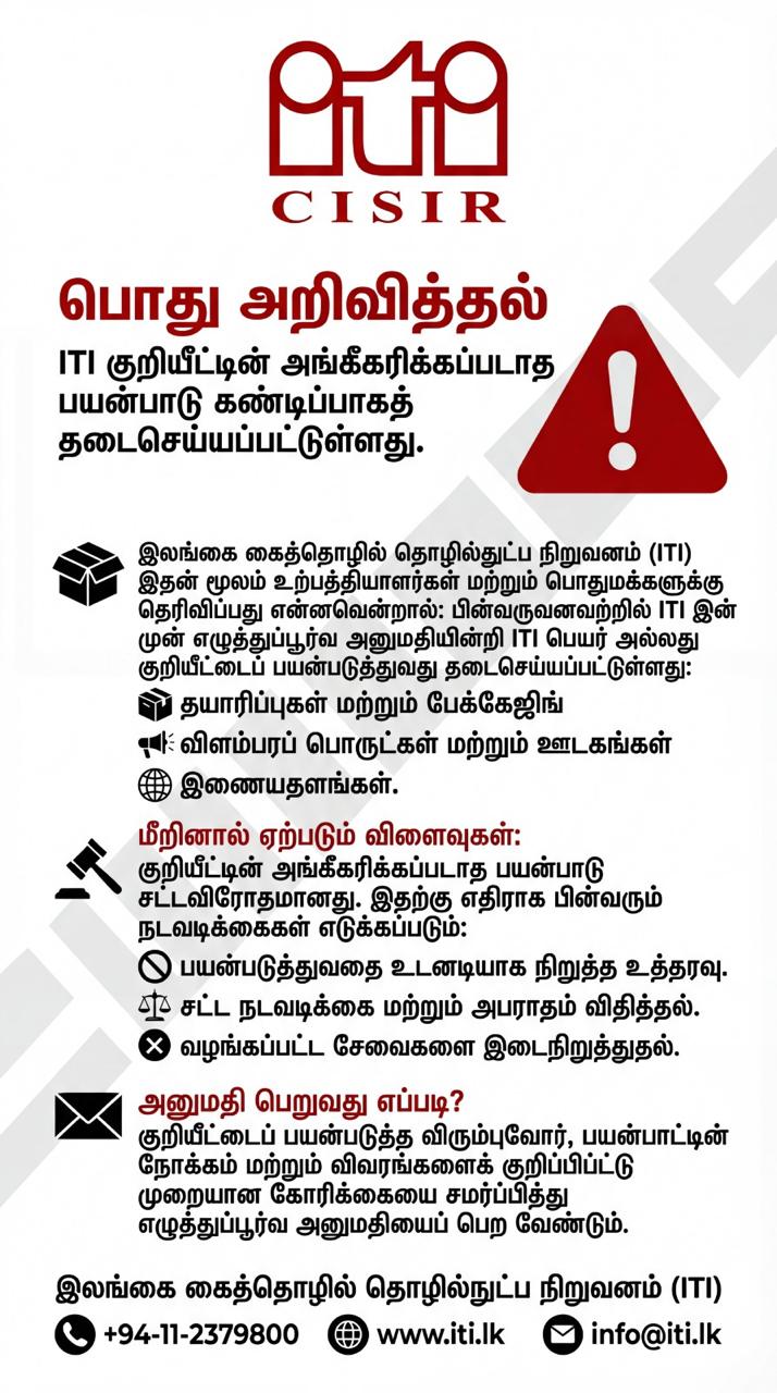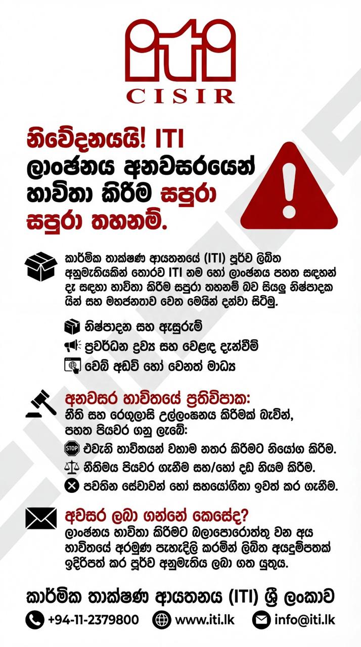 Public Notice on Unauthorized Use of ITI Logo – Sinhala